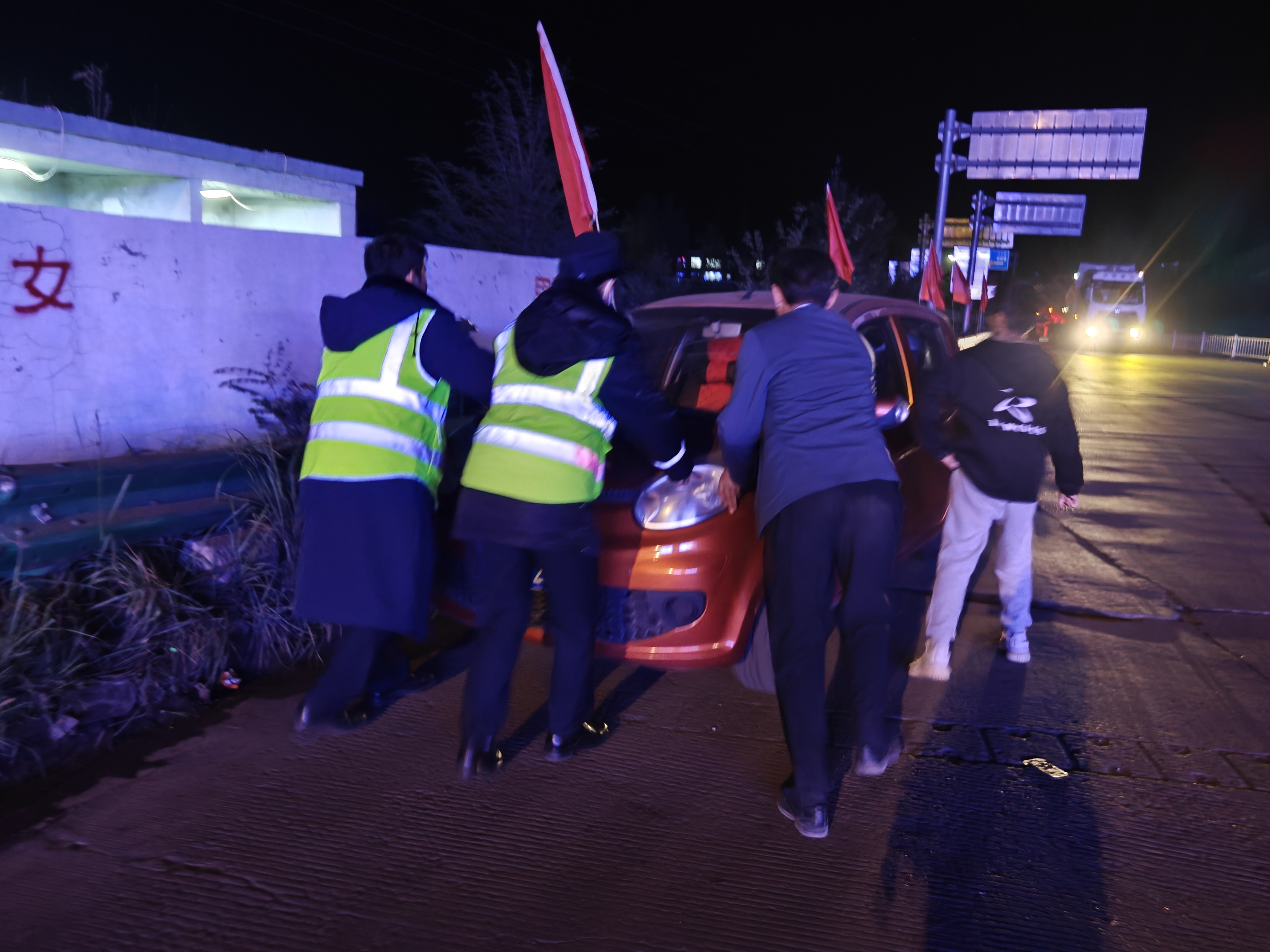 10月8日晚,新街收費所當(dāng)班隊長注意到入口一輛轎車遲遲未啟動,上前詢問得知車輛突發(fā)故障。隊長立即組織人員幫司乘人員將車推至安全地帶,并迅速聯(lián)系附近的專業(yè)維修師傅將車修好,收費所工作人員的暖心相助如同寒夜中的火把,溫暖了司乘人員的心。