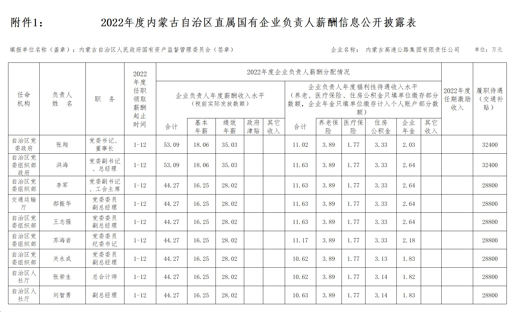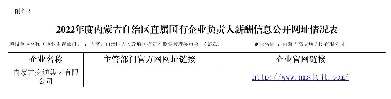 2022年度内蒙古自治区直属国有企业负责人薪酬信息公开披露表