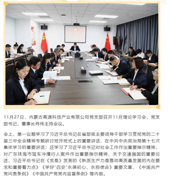 內(nèi)蒙古高速科技產(chǎn)業(yè)有限公司黨支部召開11月理論學(xué)習(xí)會(huì)