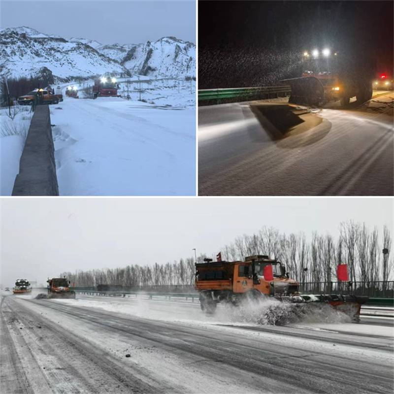 在本輪降雪來臨之前,按照交通集團統(tǒng)一部署,蒙通養(yǎng)護公司提前儲備融雪劑、防滑料等應急保通物資,截至目前共準備應急保暢隊伍2125人,除雪機械車輛813臺,儲備融雪劑13065噸,防滑料1724.44噸,并組織了多次應急演練,不斷提高養(yǎng)護作業(yè)人員的應急處置能力和協(xié)同配合能力,確保在突發(fā)情況下能夠迅速、有效地進行應對。本次降雪按照全員作業(yè)、邊下邊清的方式進行,整體除雪效率提升近四分之一。在此期間,交通集團領(lǐng)導全時段在指調(diào)監(jiān)控中心調(diào)度指揮,蒙通養(yǎng)護公司主要負責同志在除雪一線現(xiàn)場靠前指揮,并與氣象、交管等部門實時聯(lián)動,保障及時、快速清雪通車。