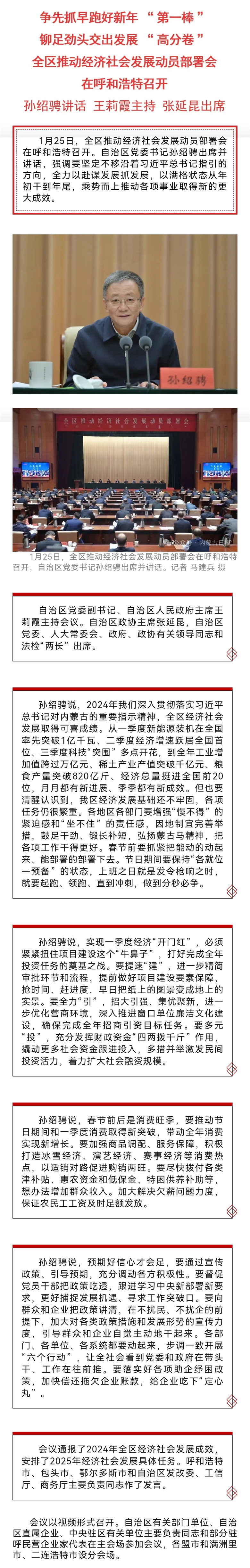 爭先抓早跑好新年“第一棒” 鉚足勁頭交出發(fā)展“高分卷” 全區(qū)推動經(jīng)濟社會發(fā)展動員部署會在呼和浩特召開