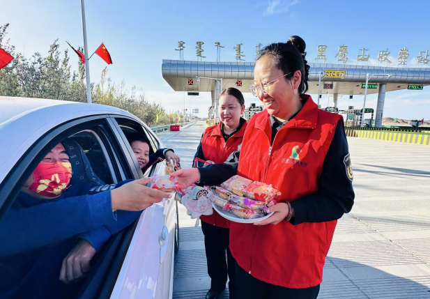 黑鷹山收費(fèi)所緊扣“我們的節(jié)日”為主題,將收費(fèi)車(chē)道化身“胡楊林司乘旅途驛站”。節(jié)前,職工提前搜集信息并制作最新版胡楊林旅游地圖、定制印著“中秋快樂(lè)”月餅禮盒、熬好滿(mǎn)壺姜茶,再親手扎制玉兔桂花、胡楊葉等造型別致的花燈。工作人員在人工車(chē)道同步遞上“第一口溫度”——月餅與熱姜茶,送上一盞貼滿(mǎn)祝福的花燈,讓中秋暖意沿車(chē)道奔向遠(yuǎn)方。