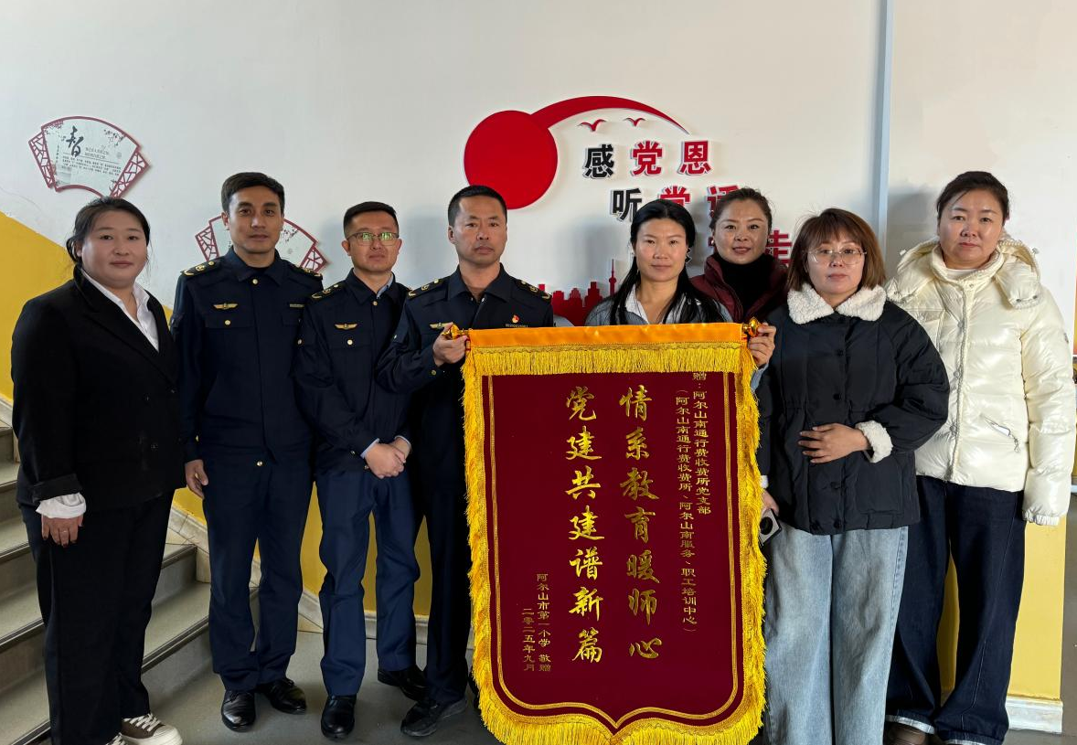 近日,興安分公司阿爾山南收費(fèi)所、阿爾山南服務(wù)區(qū)、職工培訓(xùn)中心,共同收到阿爾山市第一小學(xué)贈(zèng)送的“情系教育暖師心,黨建共建譜新篇”錦旗,這面錦旗既是對(duì)三家單位聯(lián)合開(kāi)展“教師節(jié)”慰問(wèn)活動(dòng)的高度肯定,更凝聚著校企雙方深化黨建共建、共促教育發(fā)展的深厚情誼。